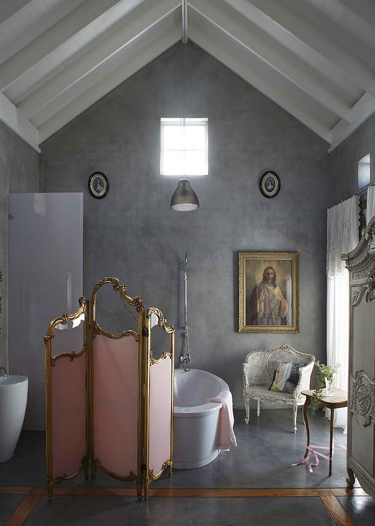 I know the popular idea is that using concrete forces you into a minimalist or contemporary style for your bathroom. But you guys, that is so far from the truth!