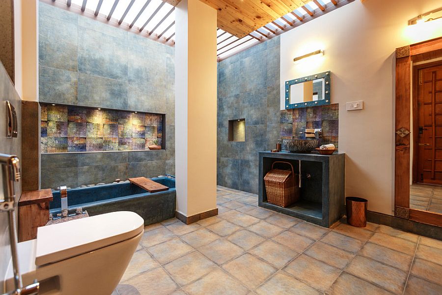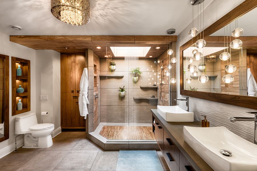 You’ll want to keep bright, bold colors away from these spaces as much as possible. But I think a splash of blue and gray always works so well in these stunning bathrooms.