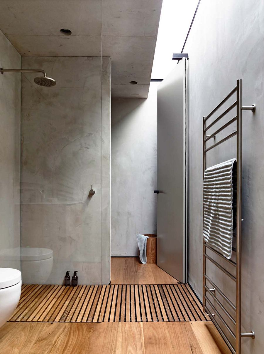 Minimalism and concrete finishes really go hand in hand, and the material’s seemingly cold, distant feel just adds to the appeal of these clean bathrooms.