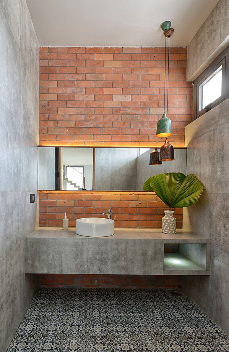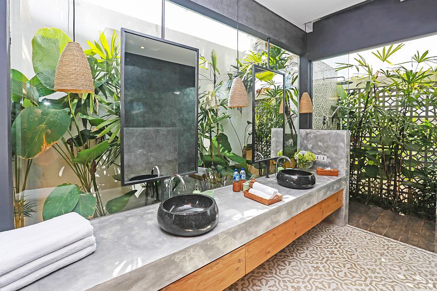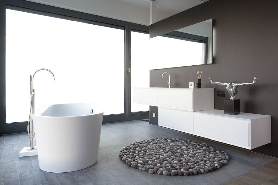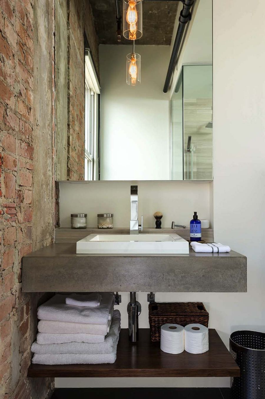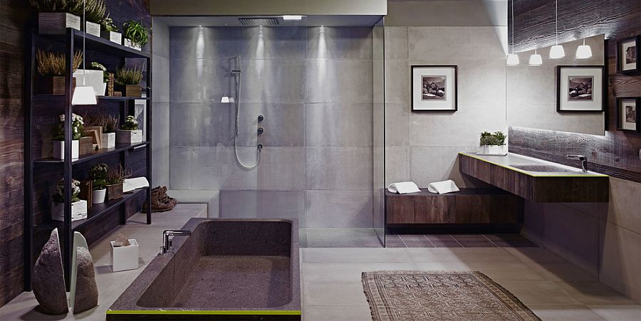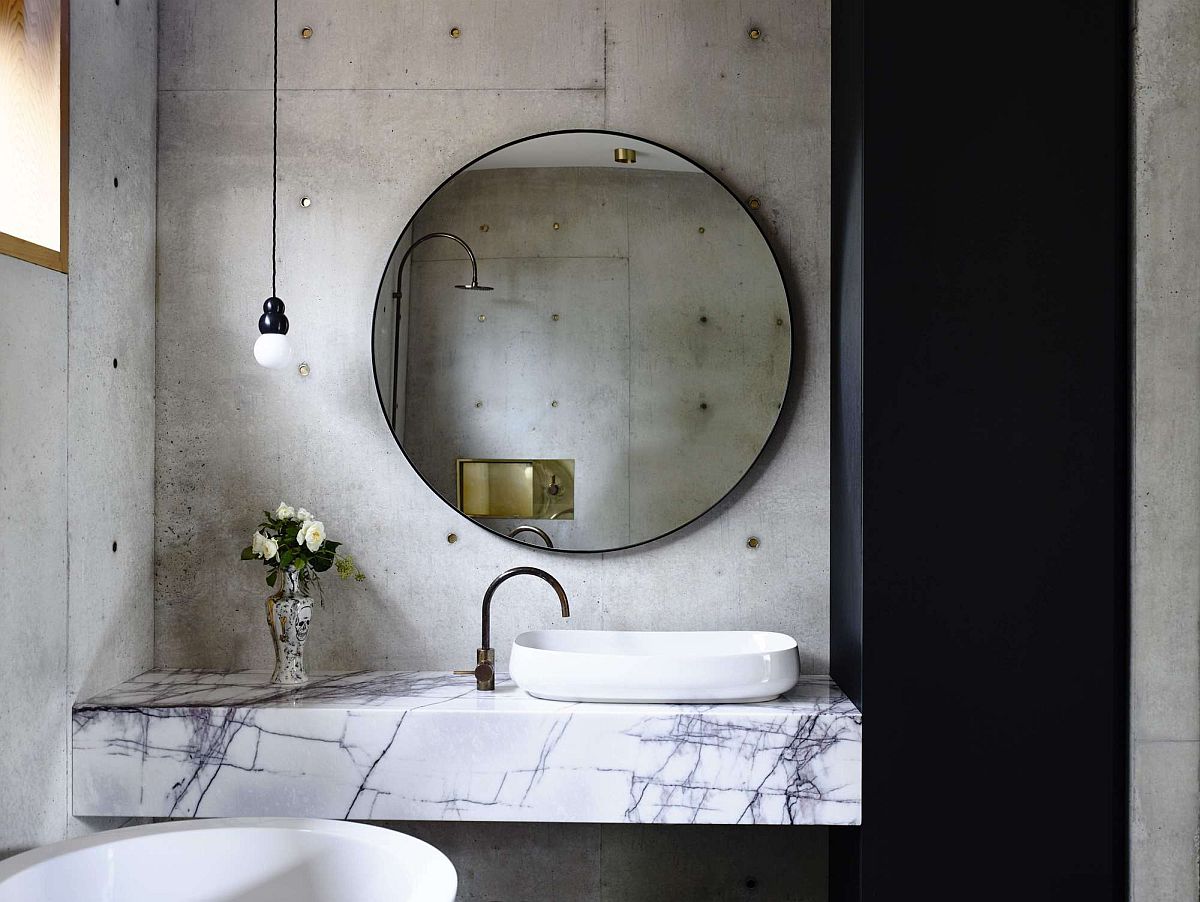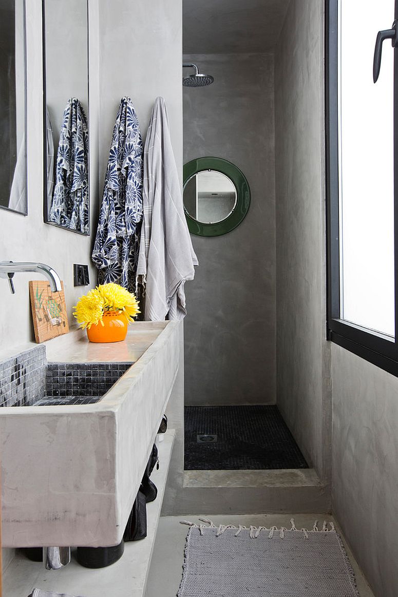 The smaller concrete elements provide a great textural contrast in otherwise monotonous contemporary bathrooms, and they do it without changing up the color palette.