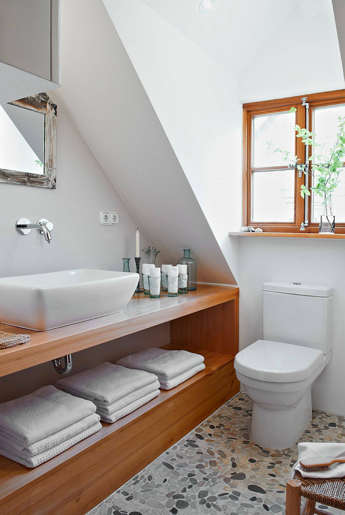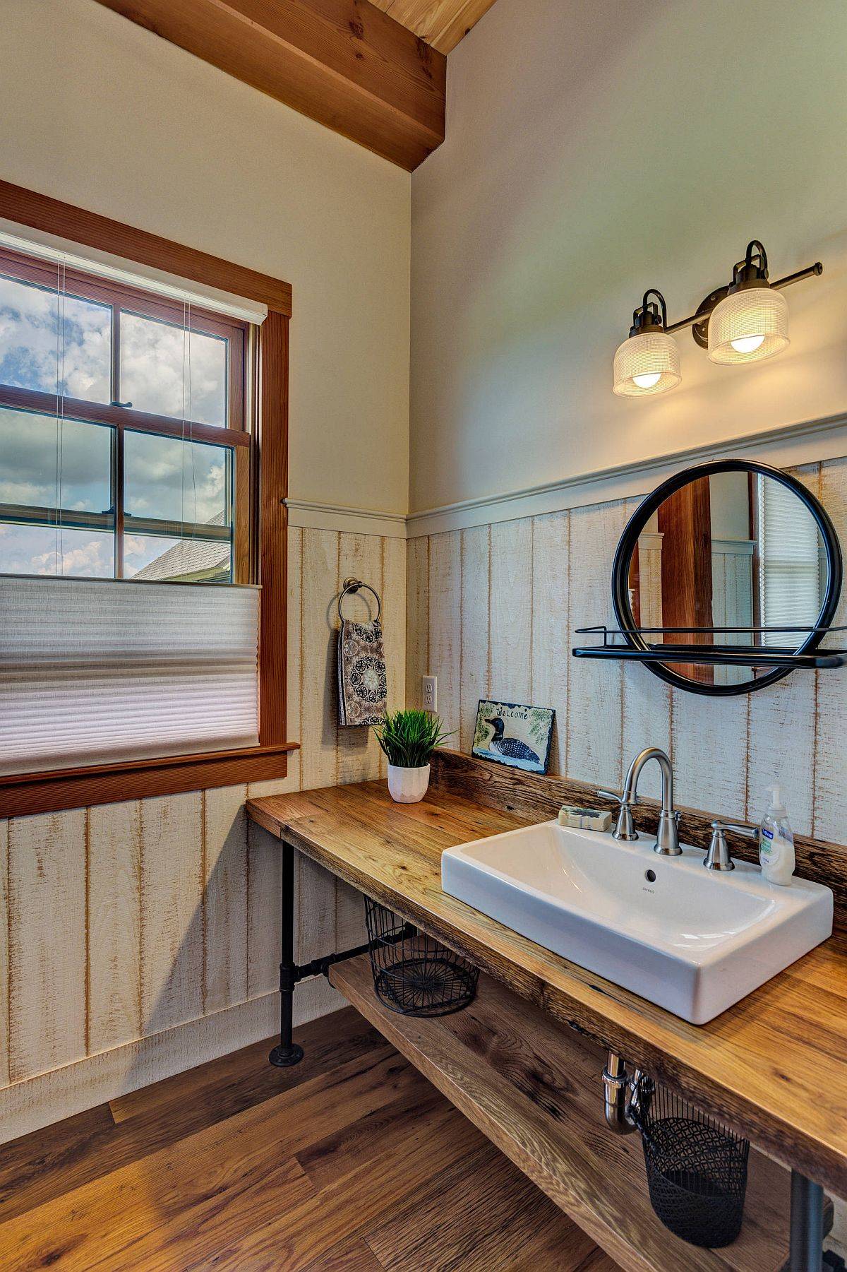 Instead of a generic under-sink vanity, think about a pedestal sink with an old, refurbished cabinet next to it for a much more authentic farmhouse vibe. Placing them in the corner is also a great way to save valuable space in a small bathroom.