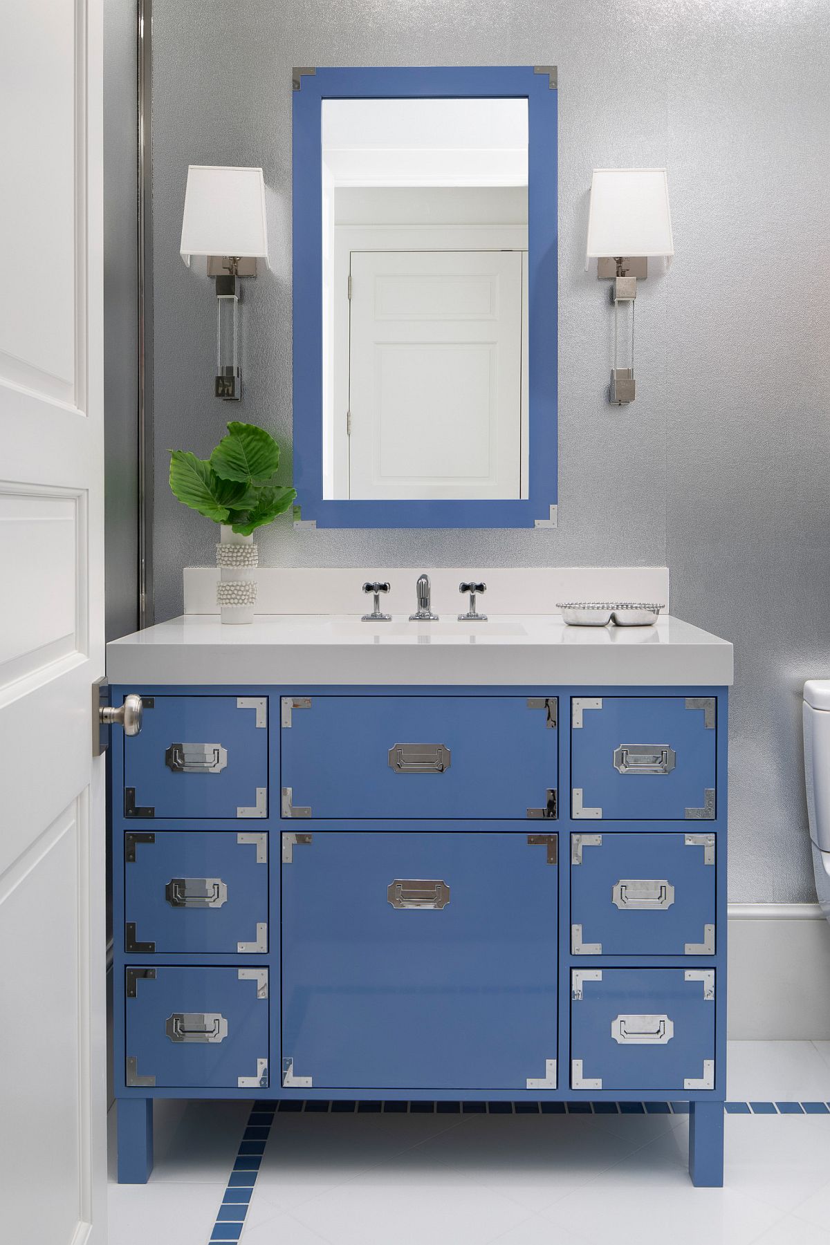 The blue vanity gives you so much flexibility to play between styles like coastal, beach, modern, and even shabby chic without having to alter it in a big way. It’s not just the hue; the vanity’s material, its handles, and its overall construction are what really help set the style.