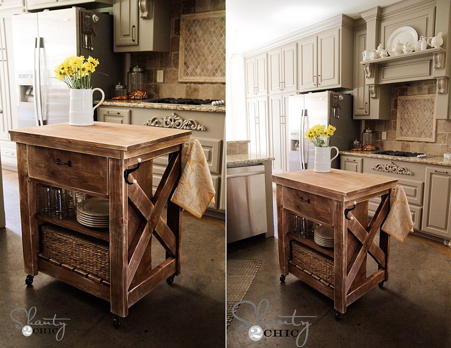 Even if you have a small modern kitchen, a clever and versatile kitchen island made from wood, like the one from Shanty 2 Chic, can make a huge impact.