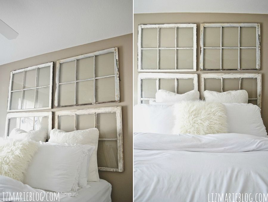 Finally, we have the antique headboard made out of window frames. This is something that feels so casual and striking, but it can also fit into so many different bedroom styles.