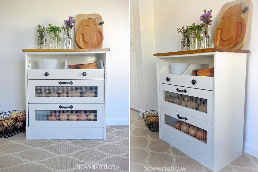 Every kitchen needs plenty of storage, and the vegetable and potato cabinet made from wood and metal mesh is a classic that will serve you well for years to come.