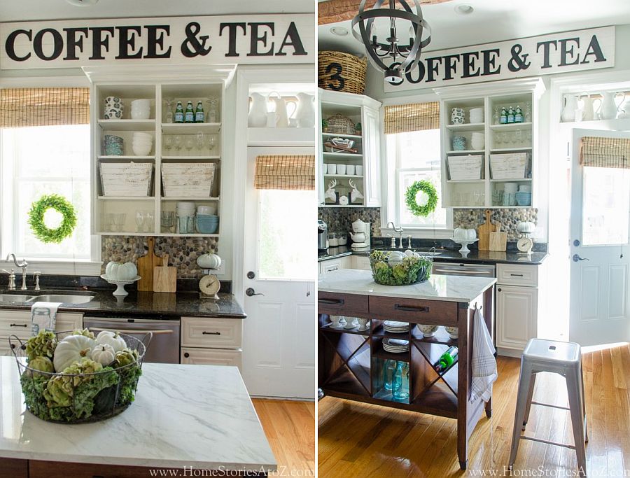 You can easily bring a kitchen together with a standout sign, like the beautiful ‘Coffee & Tea’ board you see here. It just sets the perfect tone!