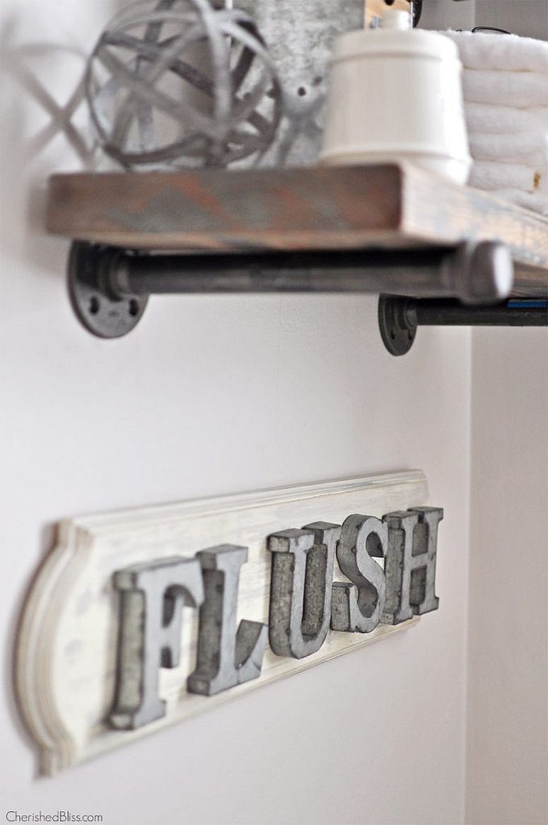 This one is a little bit fun, and you won’t have to keep reminding your family to flush all the time. It adds an industrial edge with farmhouse appeal, making it a DIY you just can’t skip.