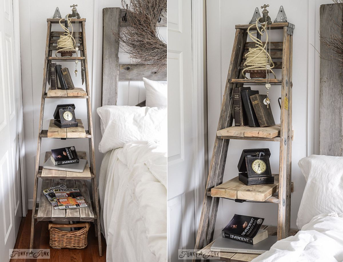 The step-ladder shelf is a huge trend right now that I’m seeing everywhere, and if you have an old ladder frame just sitting around, you can put one together in almost no time at all.