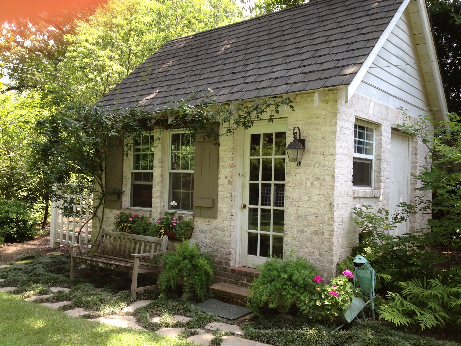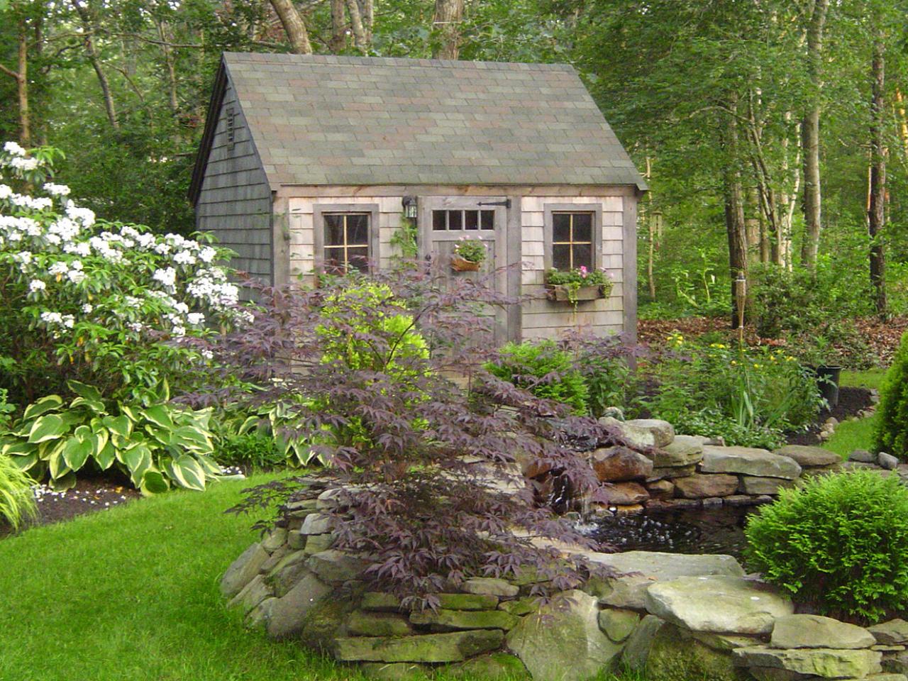 Since stone is such a natural element, all the green plants surrounding the shed are the only decor it needs.