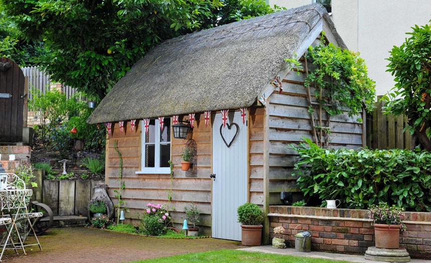 A traditional wooden shed with a charming feel is just perfect for a big, green garden space.