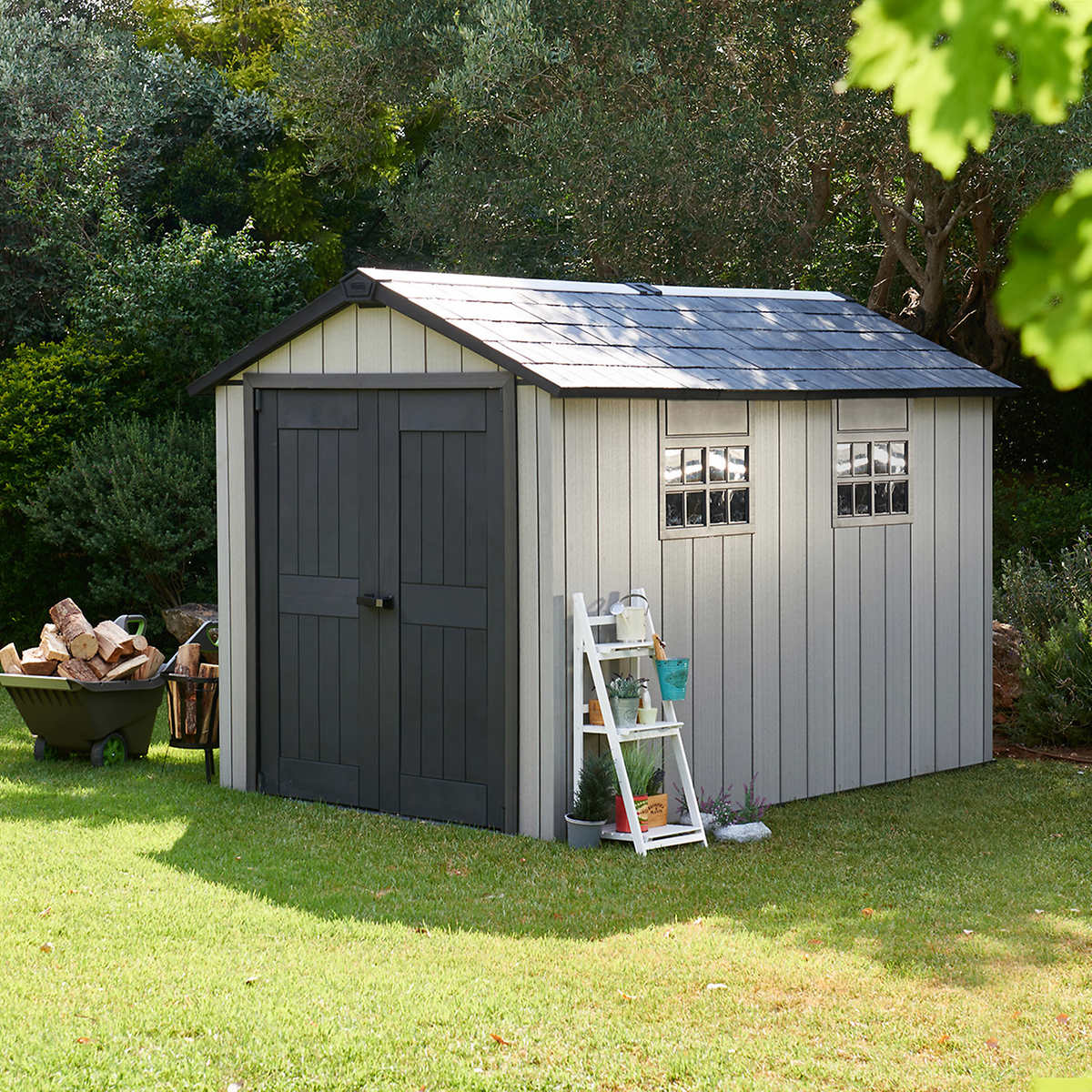 A simple gray shed with a familiar design is a fantastic choice for a really neat and tidy garden. The subtle quality of its look will put all the greenery in the spotlight and keep your garden looking fresh and balanced.