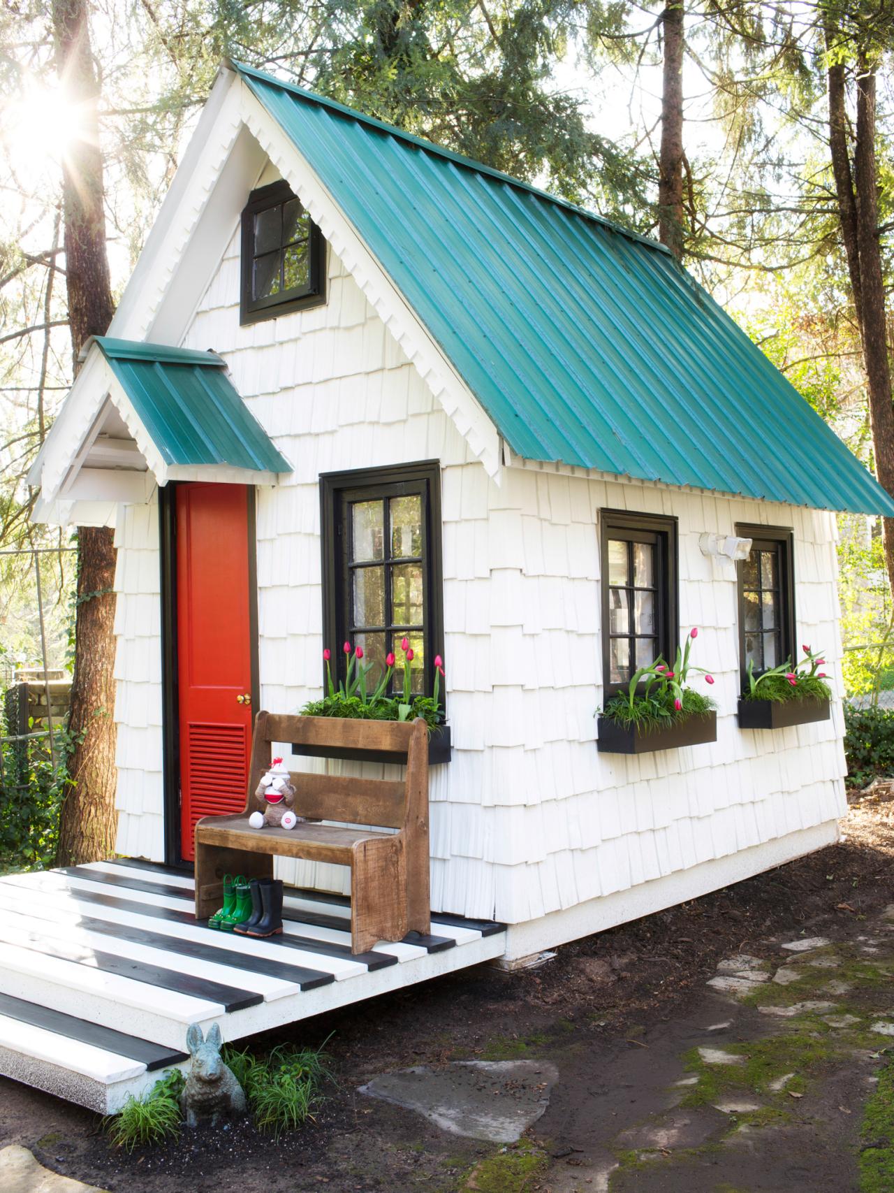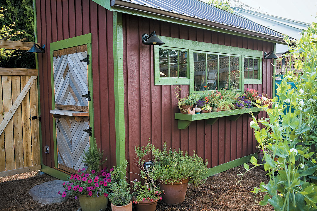 This simple house-like garden shed almost makes you feel like someone could be living inside it.