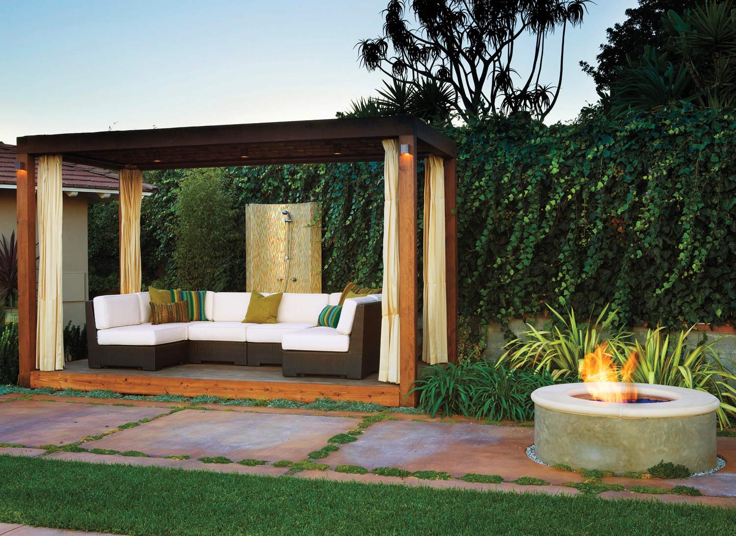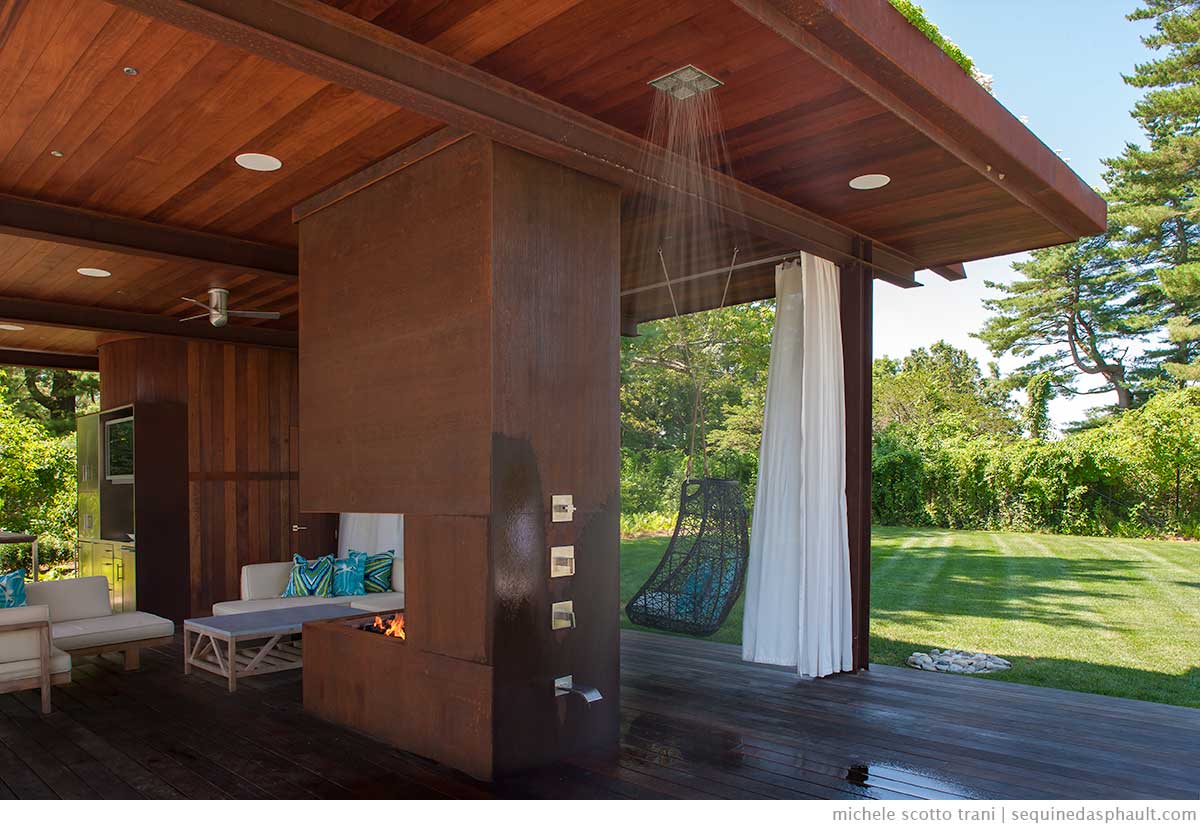 From my experience with outdoor living projects, there is one feature that adds a tremendous amount of resort style luxury and function to a backyard space and that is incorporating an outdoor shower.