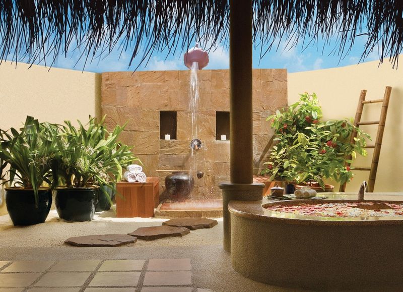 You know, luxury isn’t always about marble and gold. Sometimes, it’s a completely private open bathroom, like this true Robinson-styled place.