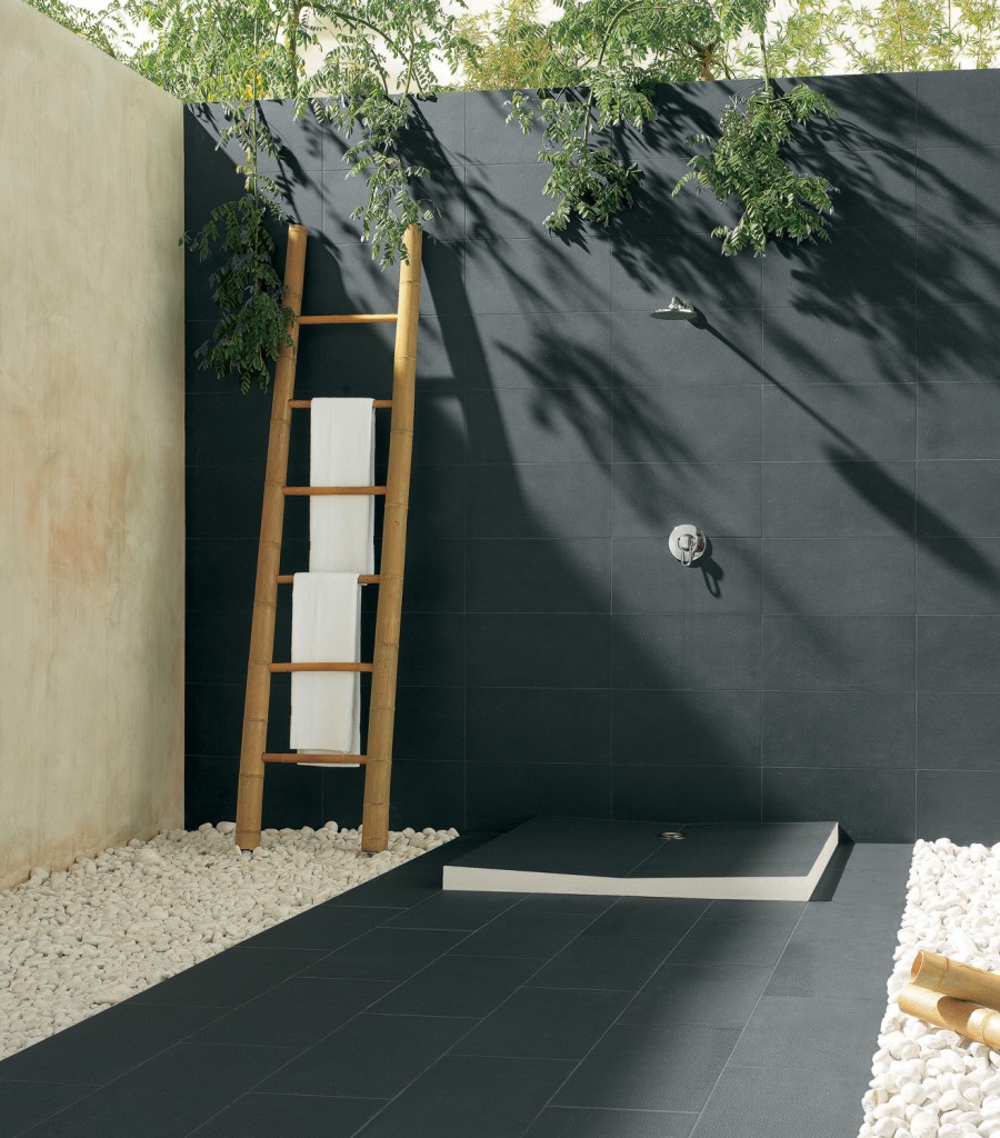 This huge outdoor shower brings together the element of stone floors with the appearance of classic tiles you’d normally see in an indoor bathroom.