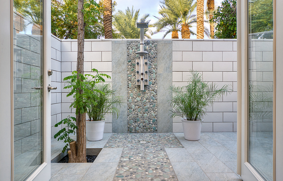This incredible outdoor shower is a clear representation of glamour and comfort.