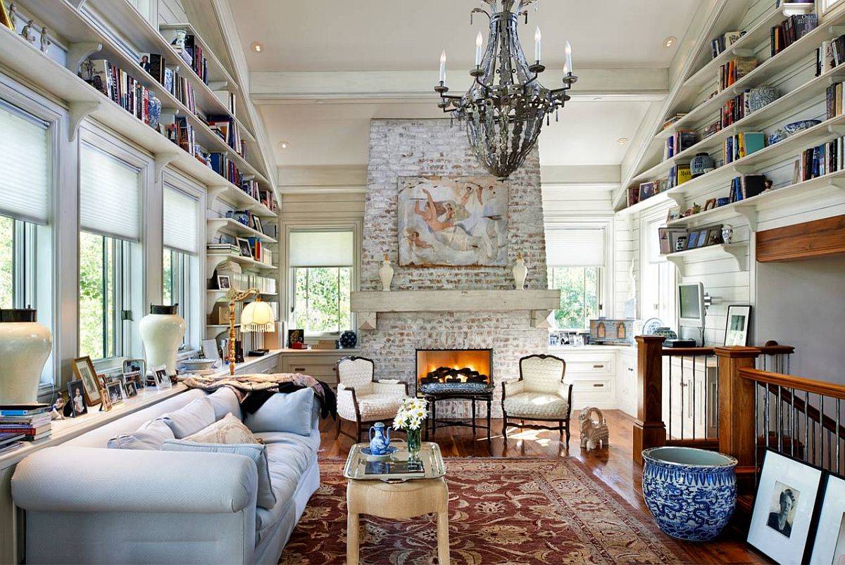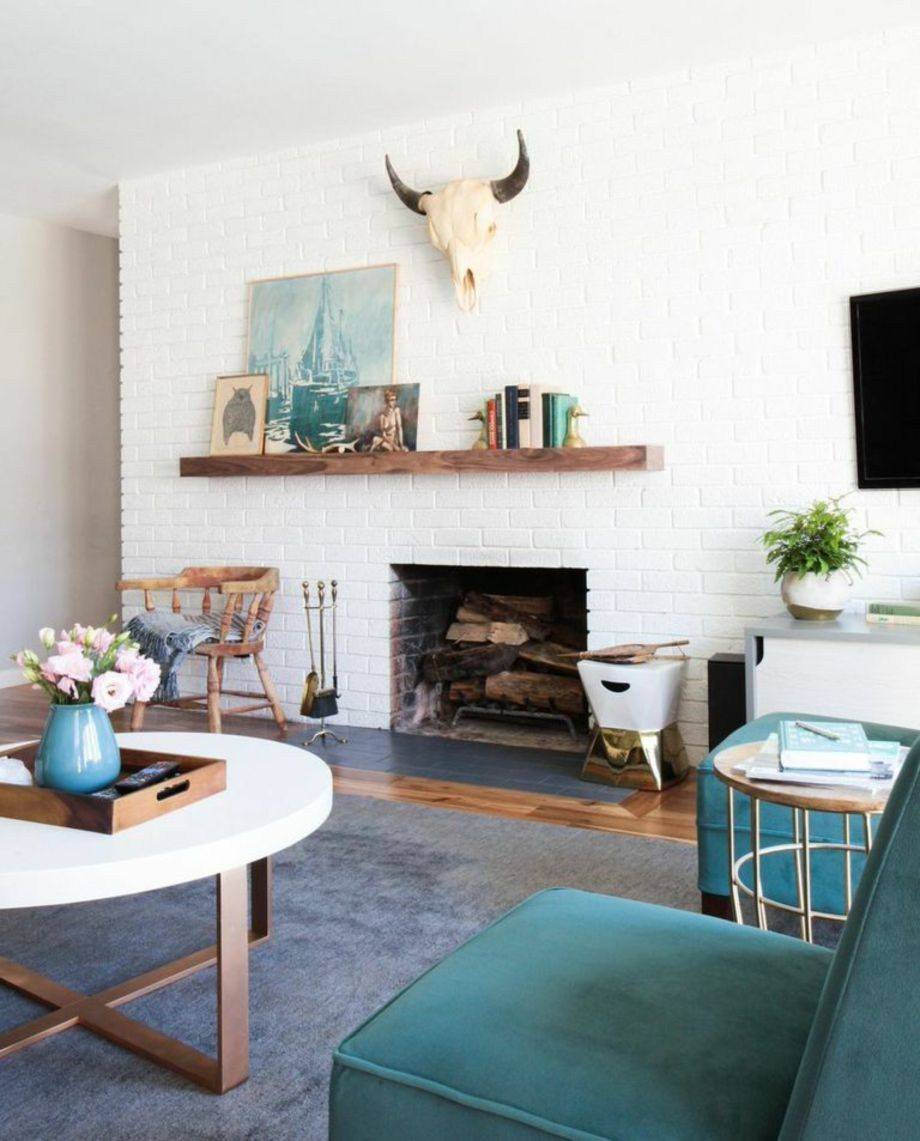The blue painted brick really makes this fireplace pop as the room’s focal point. [From Houzz]