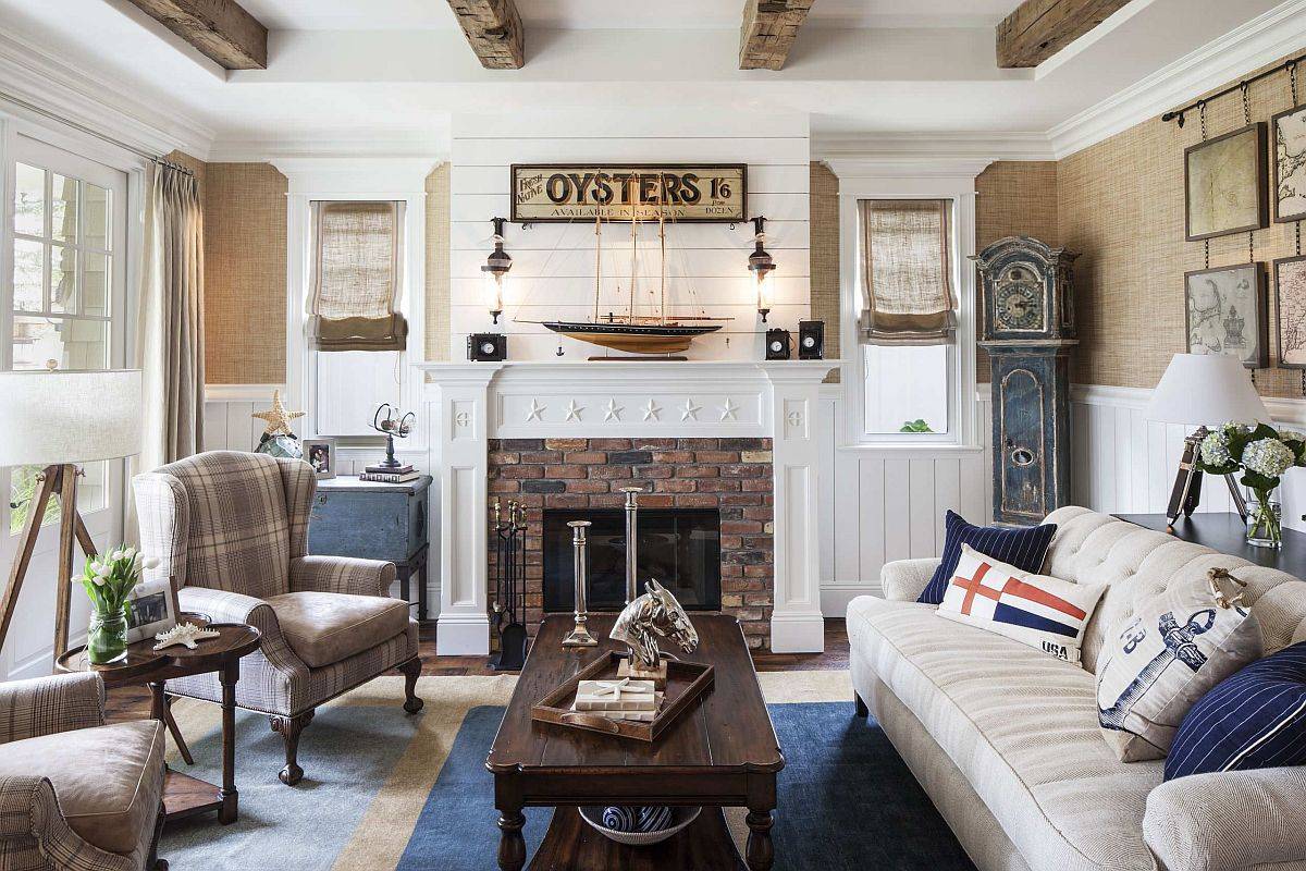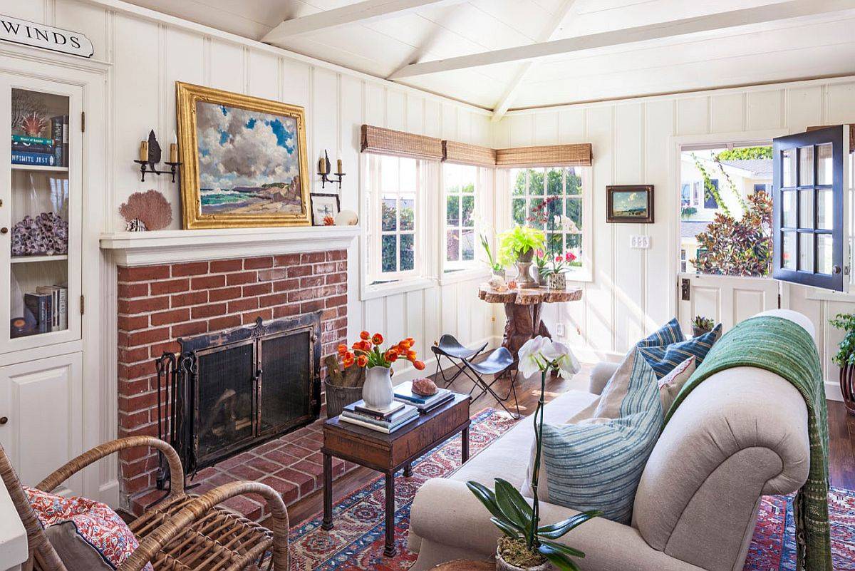 You can enhance its visual appeal by adding a large piece of wall art right above the mantle while keeping the rest of it clean and uncluttered. Styles like modern eclectic, shabby chic, tropical, and farmhouse all work beautifully with a brick fireplace.