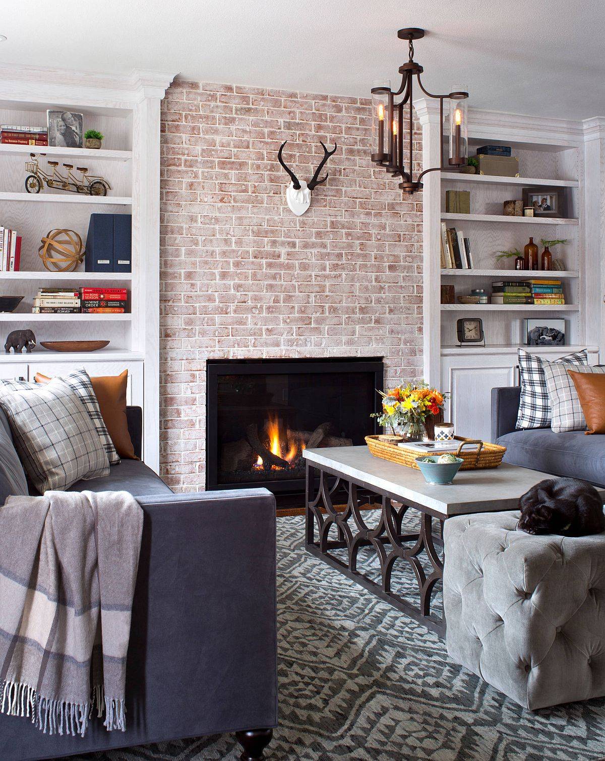 One of the best things about a brick fireplace? It’s a total chameleon. Seriously, it works with pretty much any style you can dream up for your living room or dining space.