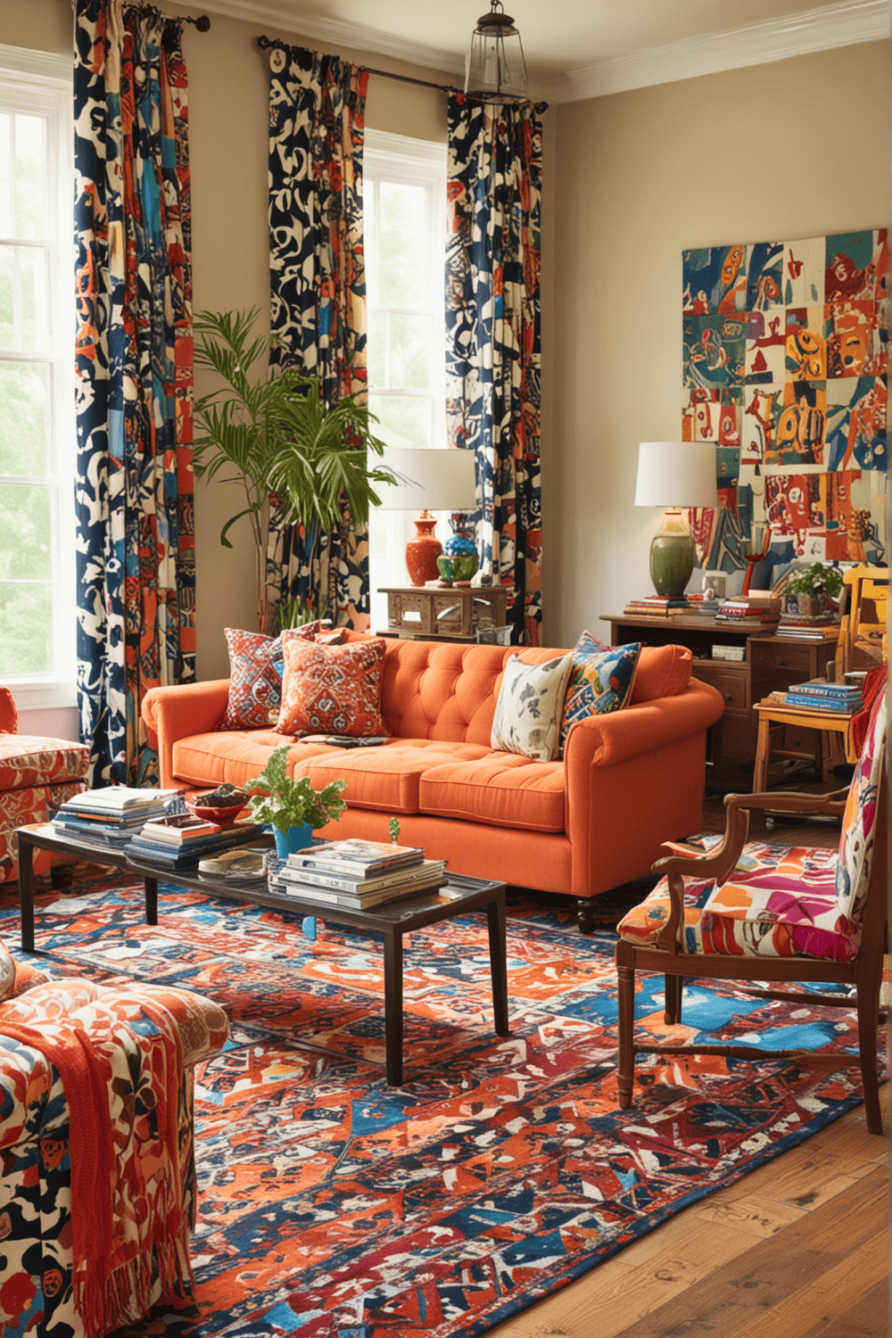 To implement this look, start with one or two key pieces, such as a rug or a pair of curtains, and build your design around them. Balance is vital; combine your bold patterns with neutral tones to prevent the space from feeling overwhelmed.
