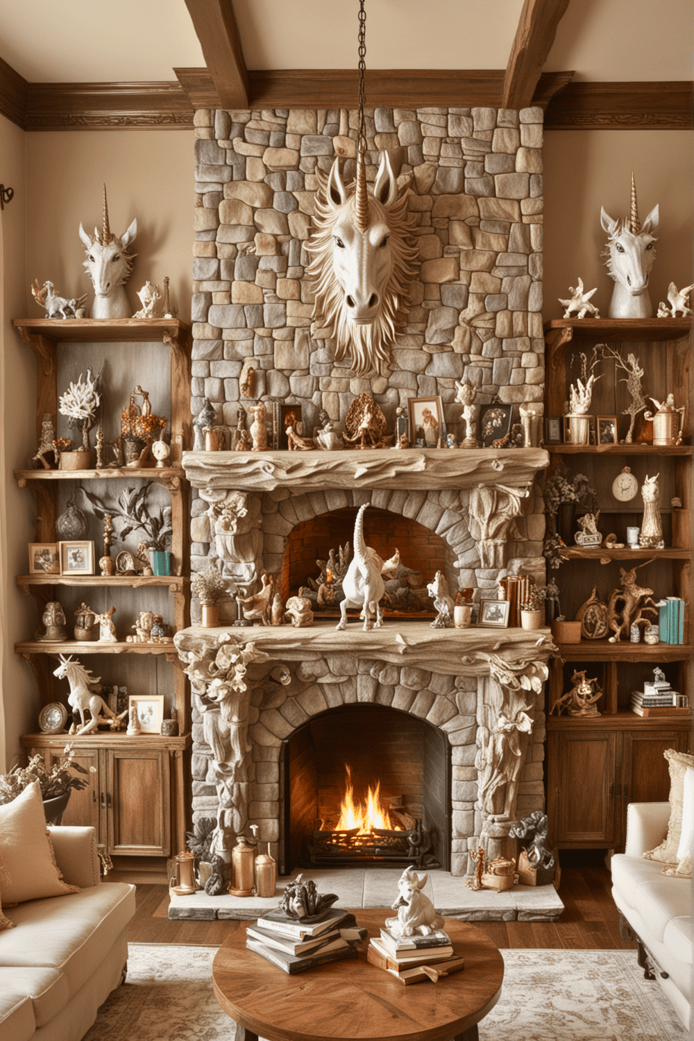 Imagine relaxing in a room where a faux unicorn head mounted on the wall or a dragon figurine adds a playful charm that ignites imagination for both children and adults.