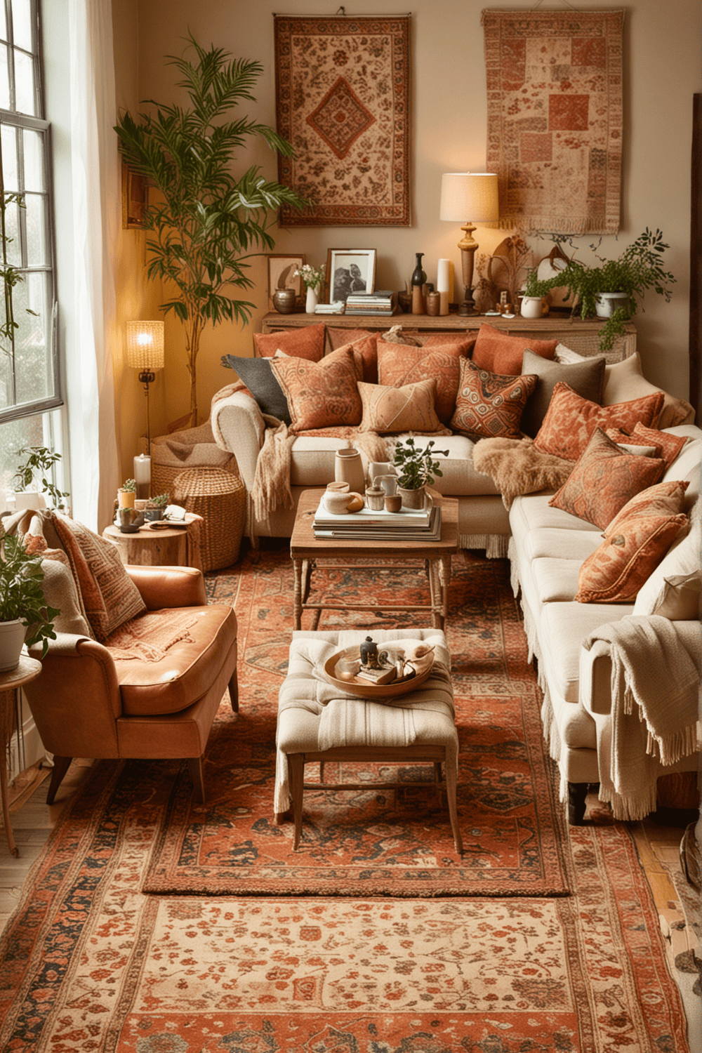 Do not hesitate to mix textures and patterns, as these elements will add depth and visual interest to your eclectic living room.