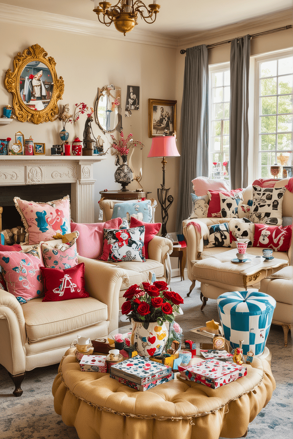Transforming your living room into a whimsical retreat, such as an “Alice in Wonderland” or “Enchanted Forest” theme, brings a sense of magic and adventure to your daily routine. This approach refreshes your space by making beloved stories come alive and rendering your home uniquely captivating.