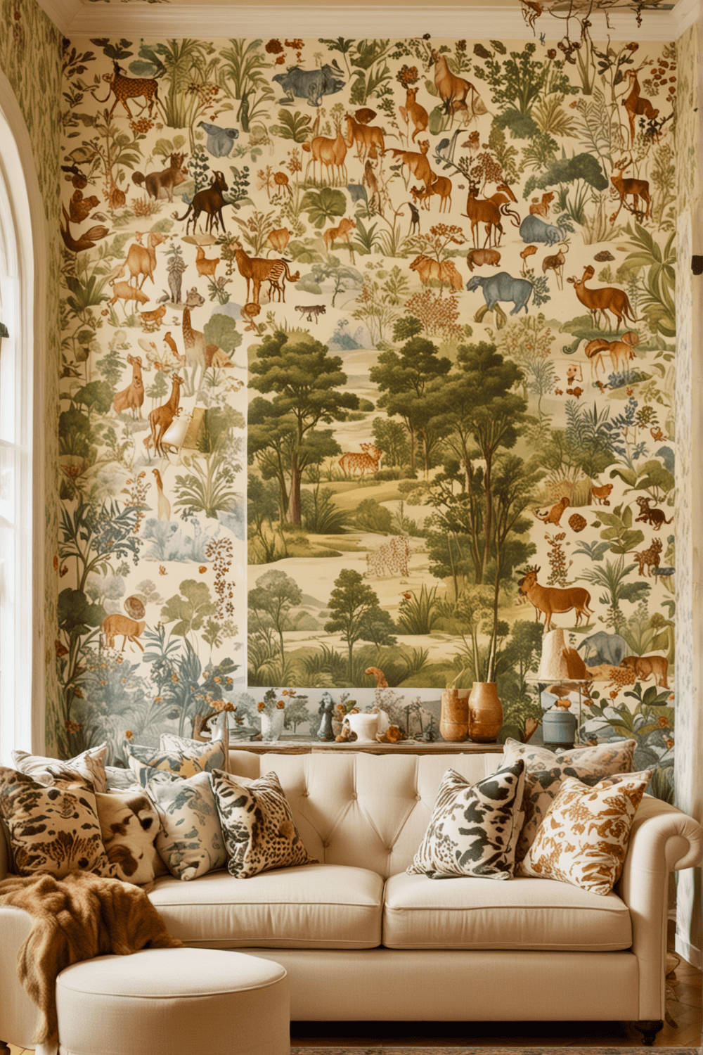 Another whimsical living room concept involves using bold wallpaper patterns. Choose designs featuring dreamlike landscapes, playful animals, or abstract art to bring a splash of personality to your space.