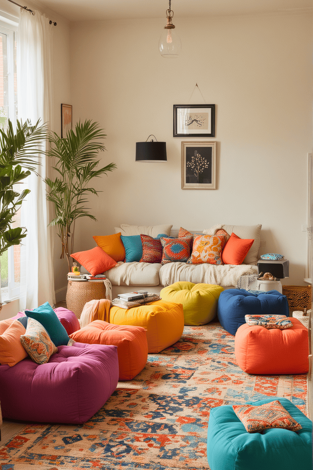 Perfect for gatherings, poufs and floor cushions encourage guests to feel at ease, allowing everyone to unwind and savor the moment.