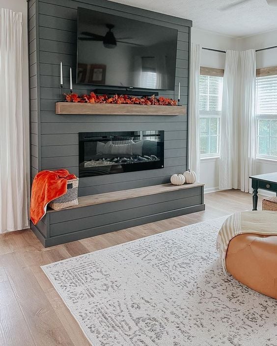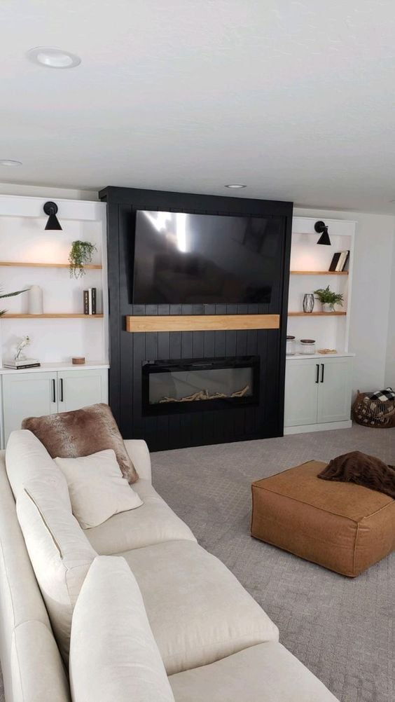It’s a fantastic demonstration of how a dark shiplap fireplace can feel both modern and inviting.