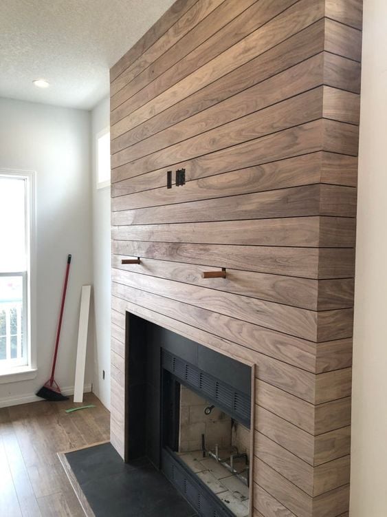 Natural Wood Shiplap Fireplace Wall for a Warm, Modern Look