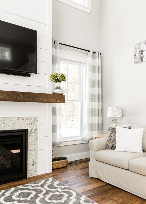 Classic White Shiplap Fireplace with Modern Touches