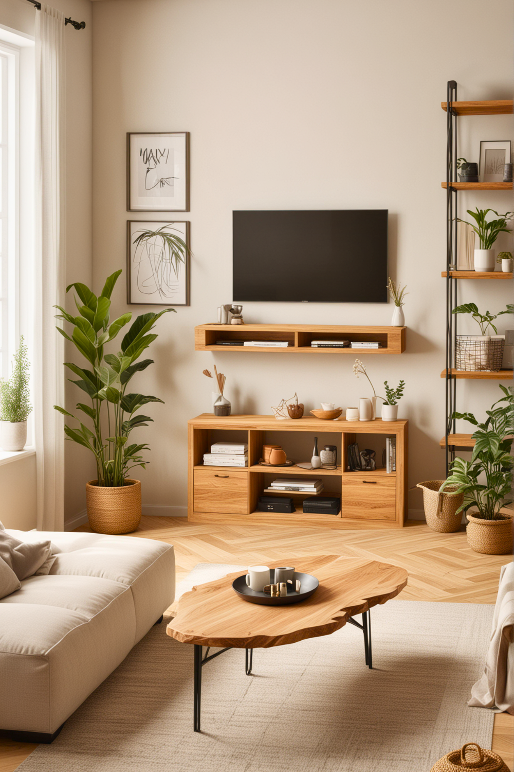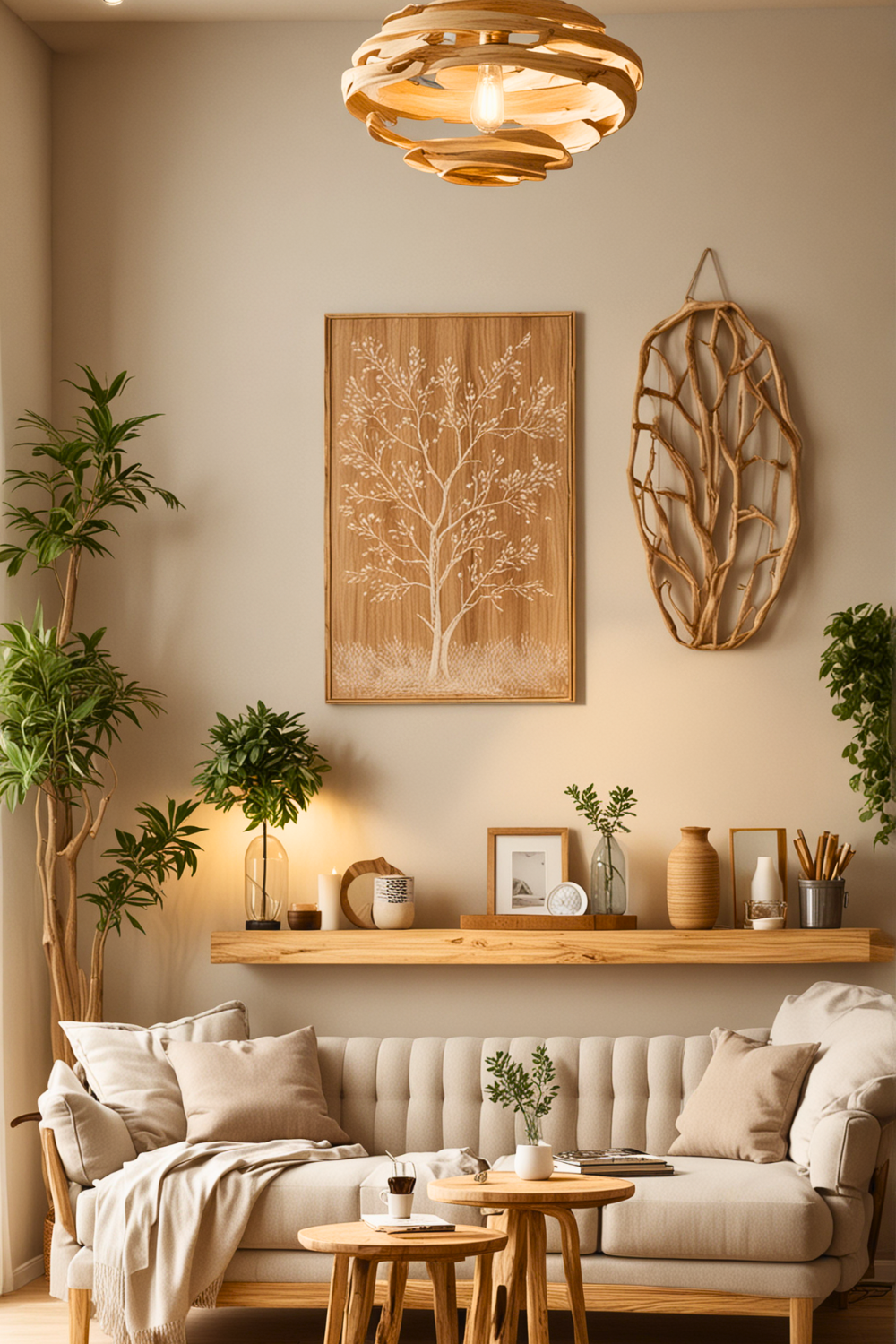 Choosing light, raw wood for furniture and decorative touches is a superb option for designing a cozy yet refined living area. The concept is straightforward but powerful: by adding these natural parts, you infuse warmth and an organic touch into any space.