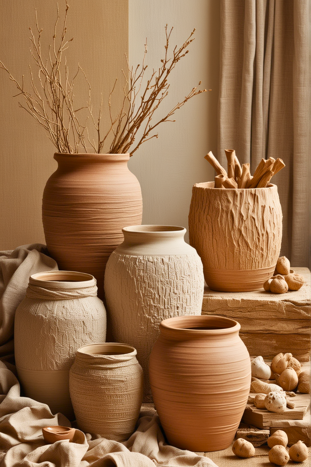Add rough ceramics or patterned artifacts as small details. By balancing these distinct textures, you accomplish a unified yet visually striking atmosphere.