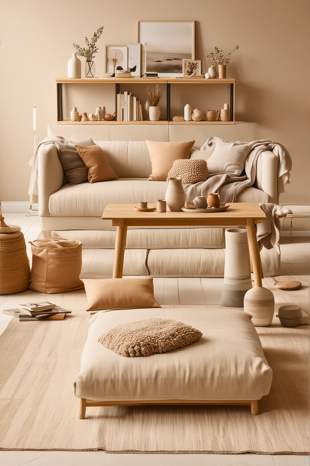 Maintain a neutral color scheme with natural hues to amplify the tranquil effect. Balance these low pieces with a few well chosen decorations, such as floor pillows or simple wall art, to keep the appearance unified and tidy.