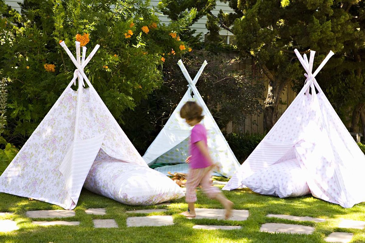 Another really simple way to make the backyard so much more exciting for kids and adults is the teepee. It doesn’t have to be a permanent fixture out on the lawn or deck; you can take it down and pack it away so easily.
