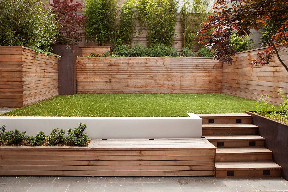 A custom wooden bench in the yard also doubles as a handy storage spot. [From: Verner Architects]