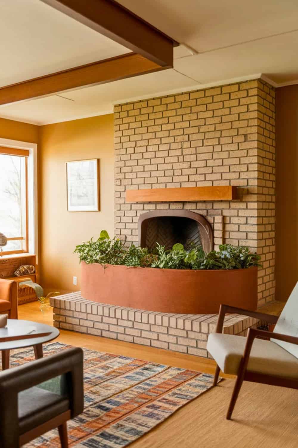 Placing greenery right into the hearth truly makes the space feel vibrant and organic. It totally reinforces that era’s deep connection to nature and a harmonious indoor outdoor feel.