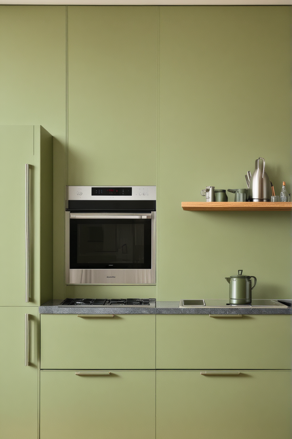The monochrome elegance of sage green in your kitchen is effective because it creates a unified and stylish setting. By using various tones of sage green, you can achieve a consistent appearance that feels both modern and enduring.