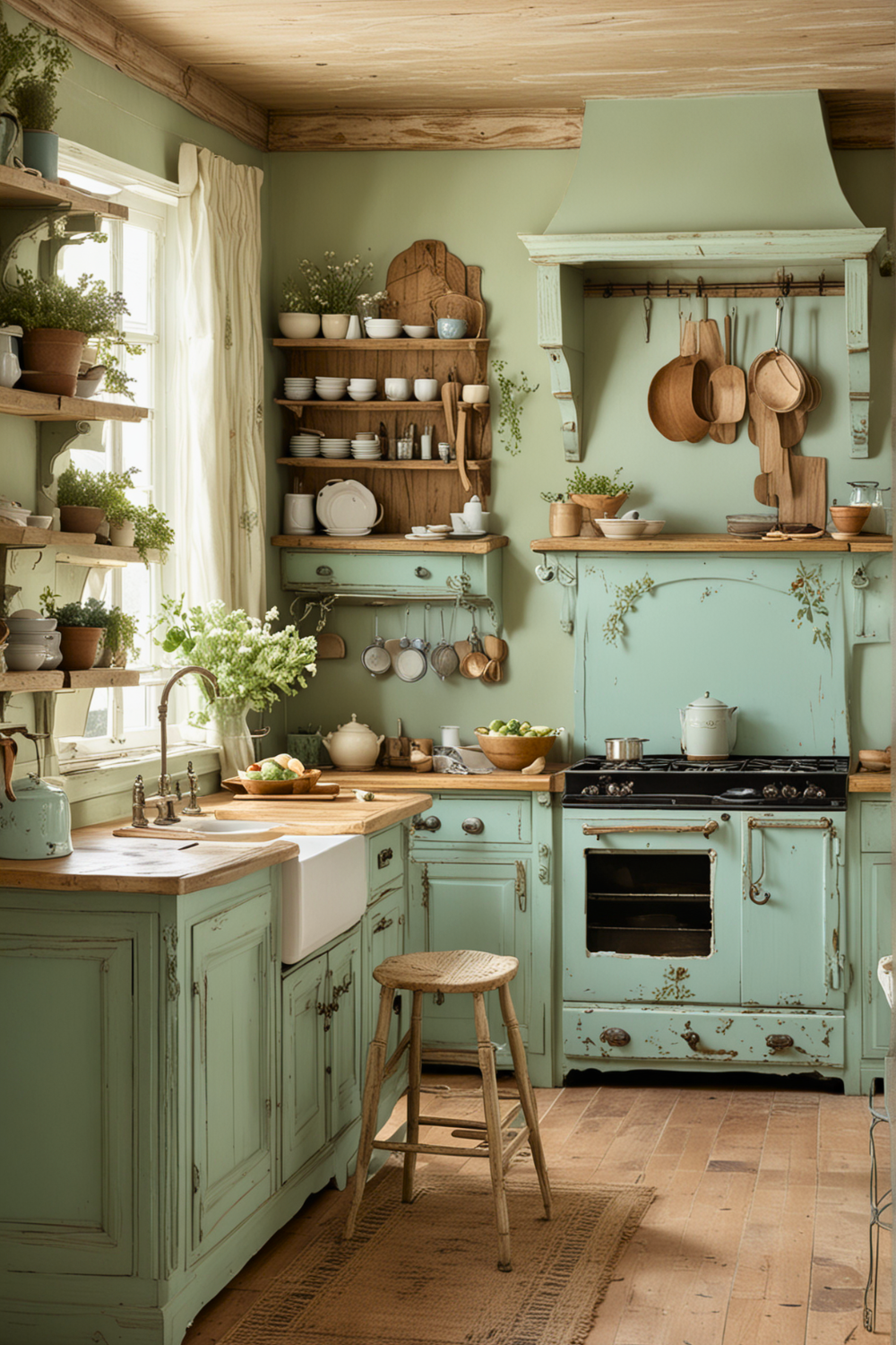 This blend of vintage and contemporary can make your kitchen not just a functional space, but a delightful place to gather. Start by painting your kitchen walls in a soft sage green shade.