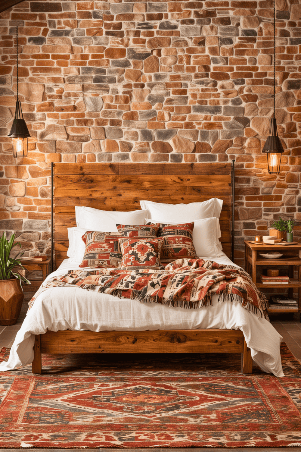Exposed stone or brick walls can truly change the feel of your bedroom. This design idea isn’t just for looks; it brings a rugged, natural sensation that is both warm and inviting. These features fill a space with an earthy vibe, making it perfect for anyone who loves a Southwestern theme.