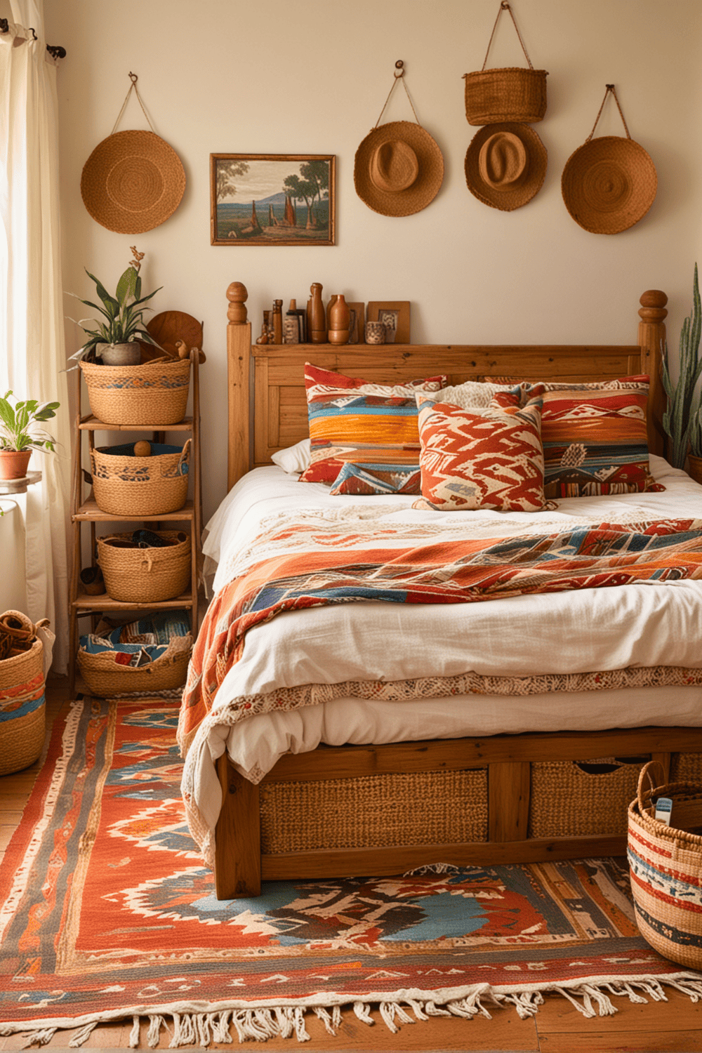 Bringing handwoven baskets into your bedroom combines practicality with style, turning everyday storage into a piece of art.
