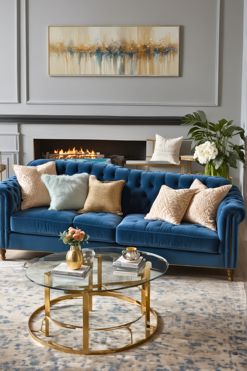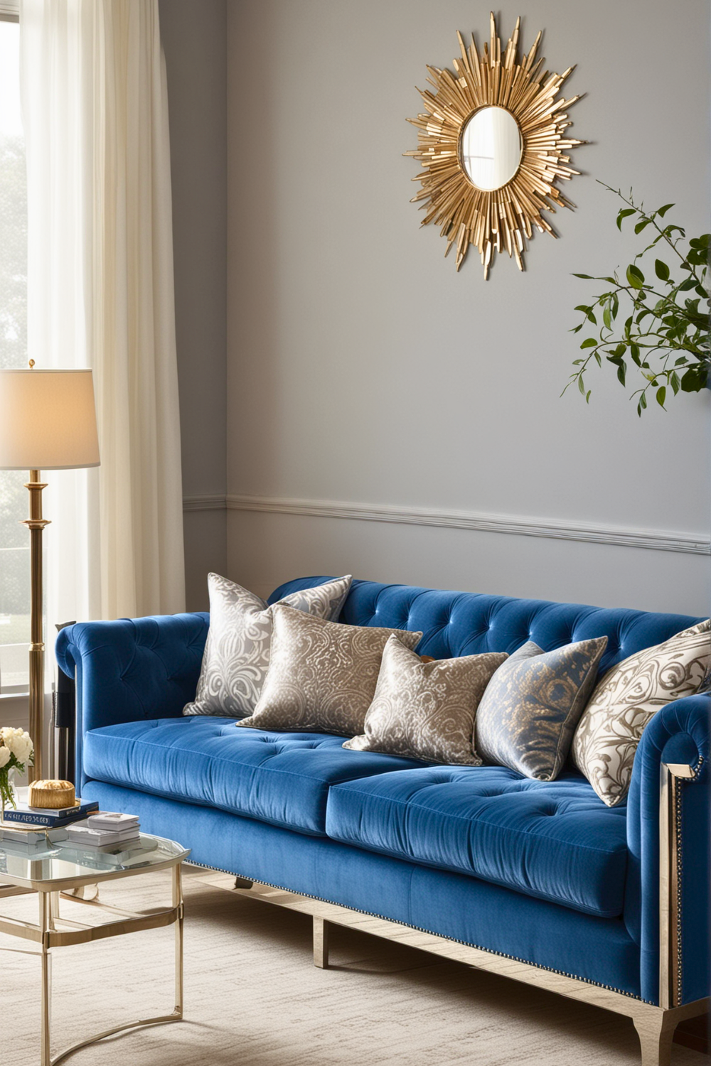 This polished aesthetic can also contribute to your mental well being, giving you a serene and stylish environment for relaxation and entertainment. To achieve this classic sophistication, start by choosing a prominent piece like a blue couch.