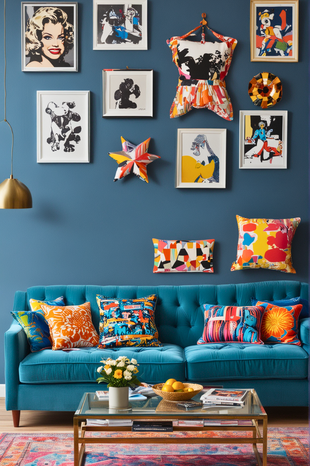 Place these artworks strategically around the room where they are easily noticed. Bring in brightly colored cushions that mirror the hues in your selected artwork.