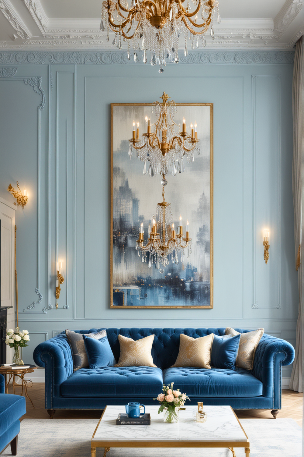 Include a few darker blue touches in accessories or artwork for visual contrast. Always ensure you balance these blue tones with neutral elements like white or cream to prevent the space from feeling too cool.