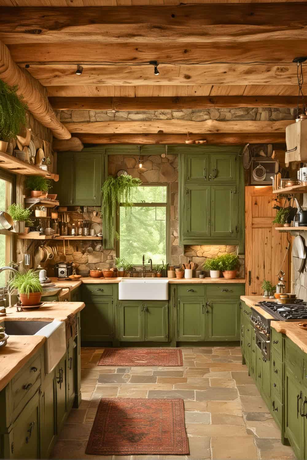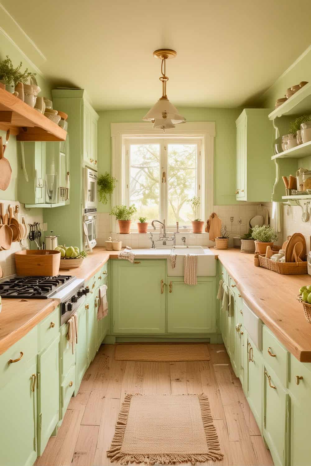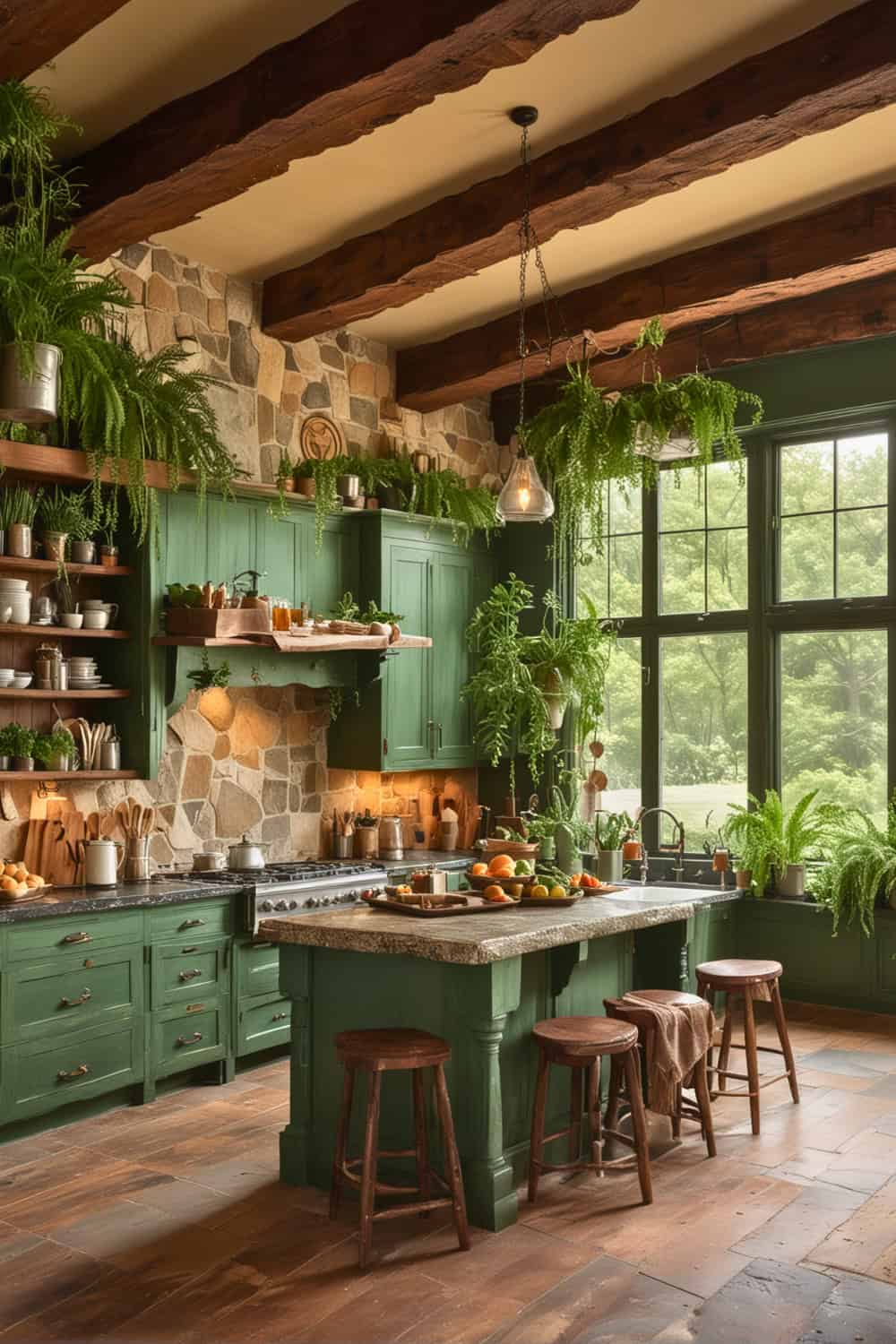 It is perfect for anyone wanting a cozy and inviting space that feels like a getaway into nature. To achieve this, begin by choosing fern green for your cabinets or accent walls.