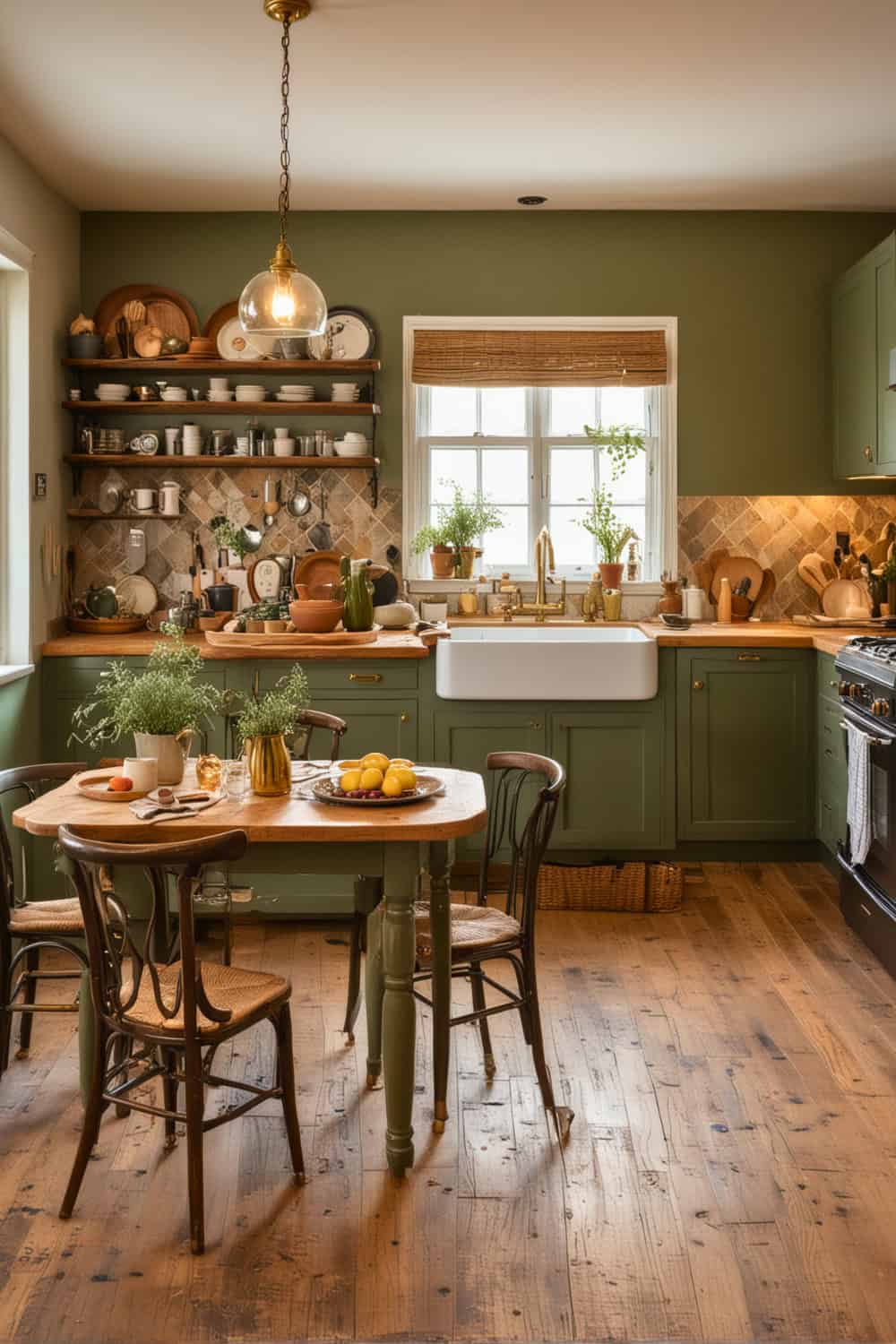 Sage green looks truly lovely alongside natural wood pieces and bright white accents. Meanwhile, olive green provides a deep, welcoming warmth that complements both contemporary and classic kitchen designs beautifully.