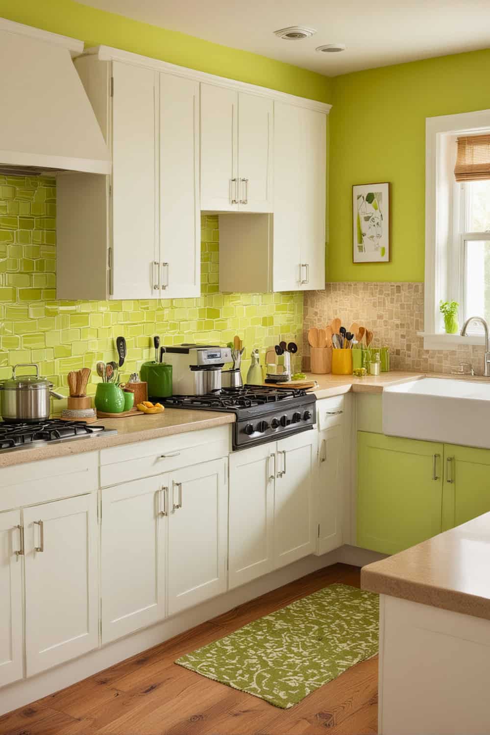 Choose lime green for its power to lift spirits and create a vibrant atmosphere. To make this happen, begin by picking specific areas in your kitchen that you want to highlight with lime green.