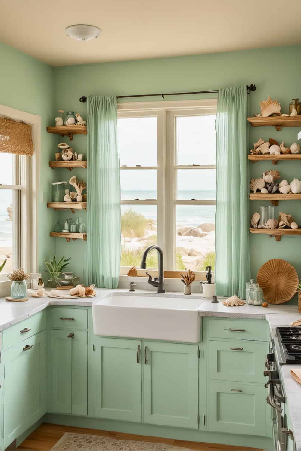 Seafoam green is the ideal color if you are envisioning a relaxed, beach inspired kitchen. This cool, soothing shade instantly brings to mind calm coastal shores, making your cooking area a peaceful sanctuary.