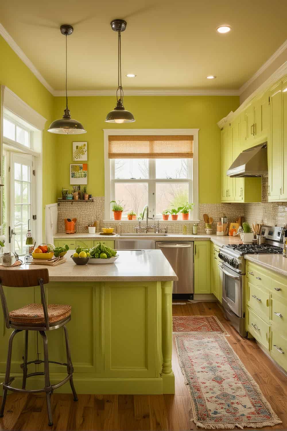Using chartreuse in your kitchen design is a fantastic way to inject vibrancy and character into the space. This striking blend of green and yellow is perfect for anyone wanting to make a bold statement.